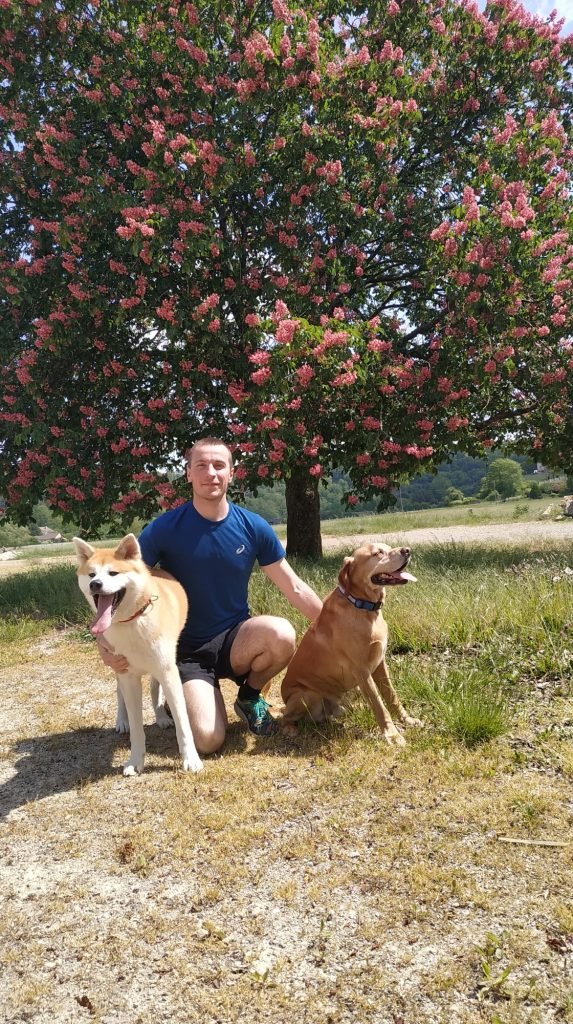 Pour parfaire quelques connaissances, j’ai passé l’ACACED en 2020 puis je continue de me former pour apprendre à mieux interagir, gérer et satisfaire les besoins fondamentaux de mes chiens, mais aussi afin de pouvoir aider et aiguiller au mieux les familles de mes bébés. L’élevage est de taille familiale ce qui me permet de pouvoir passer du temps avec chaque chien et de bien travailler la socialisation des chiots et les amener du mieux possible à découvrir le monde dans lequel ils vont évoluer. Cela me permet également de pouvoir consacrer du temps aux familles de nos bébés pour les accompagner durant toute la vie de leur compagnon de route. En dehors de l’élevage, la famille se compose de moi-même, de mon conjoint Olivier, de mon papy chien Fuego (croisé labrador de 13 ans), de Seika ainsi que deux chats Mango et Ricotta (Chats récupérés dans des associations).